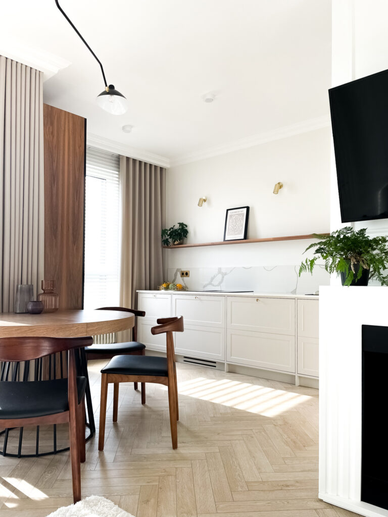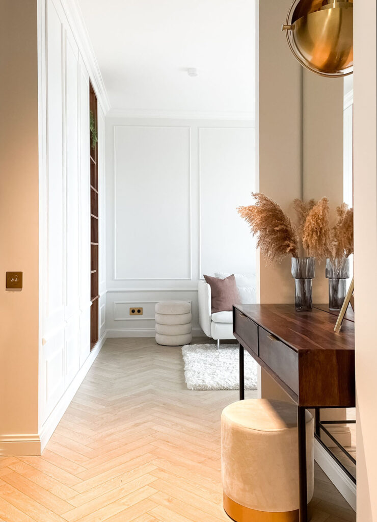 Projekt wnętrza 50 m dla dojrzałej kobiety. Wnętrze zostało zaprojektowane w stylu francuskim. Lekkość i niewymuszona elegancja królują w tym wnętrzu.
