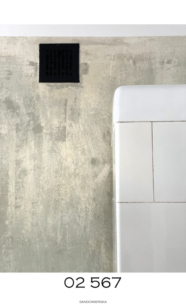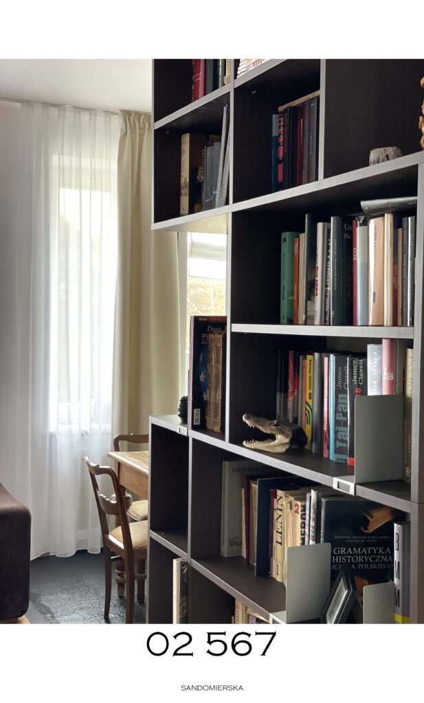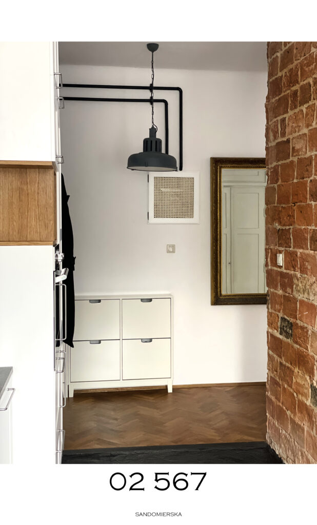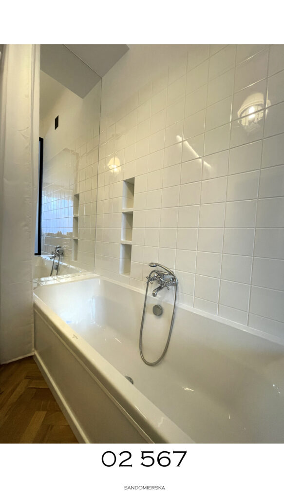Kamienica z lat 30-tych z ciekawą tkanką zabytkową w eklektycznej odsłonie. Zachowaliśmy drewniane wnęki, ceglane oraz różnobarwne ściany sypialni powstałe ze zdartych starych powłok farby. Maskownica wanny została wykonana z drzwi pierwotnie dzielących kuchnię z sypialnią.