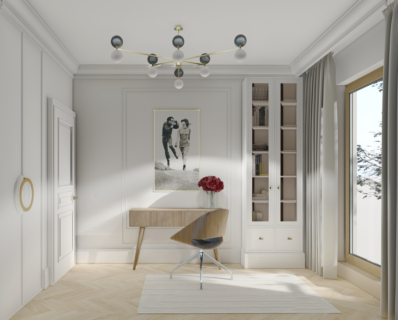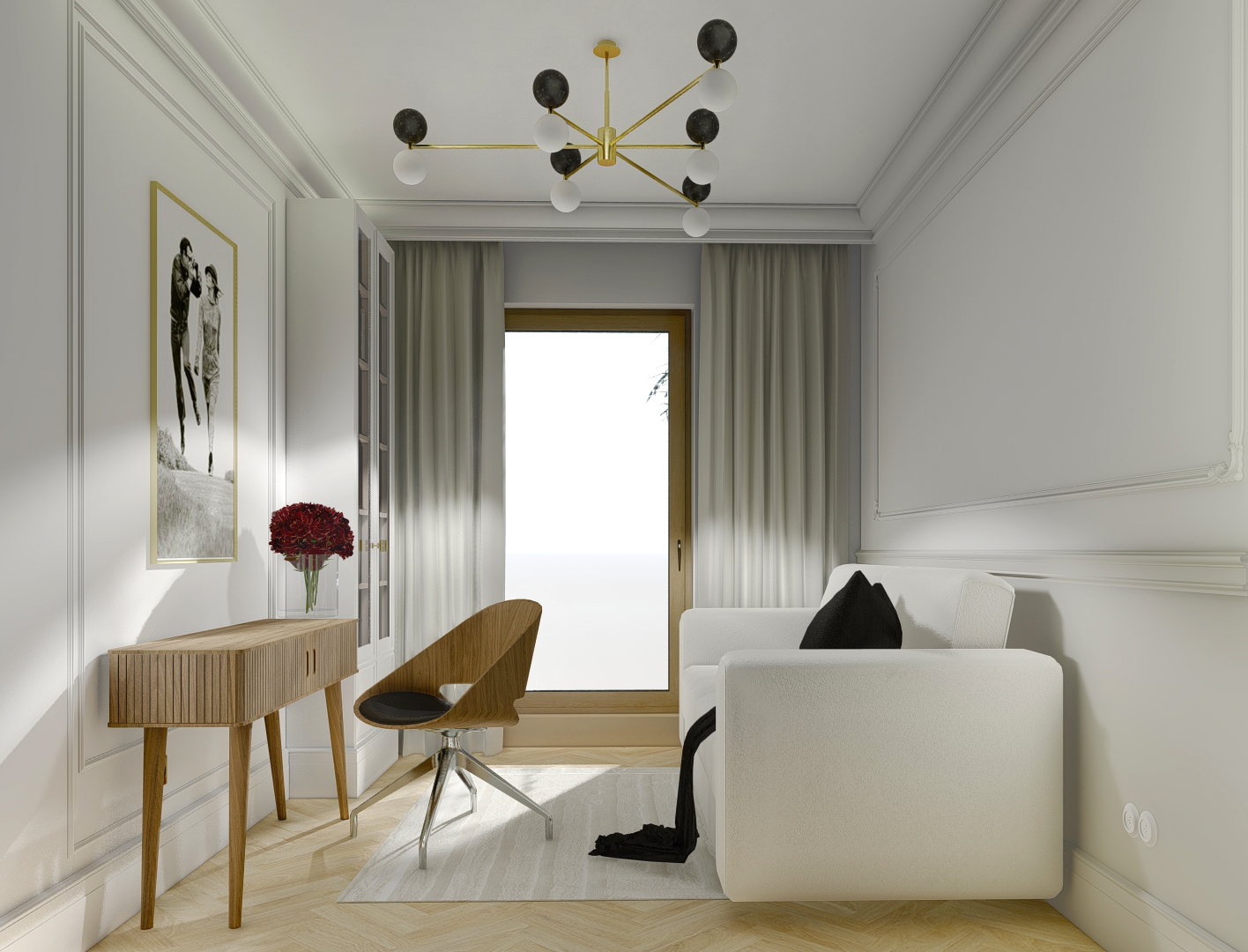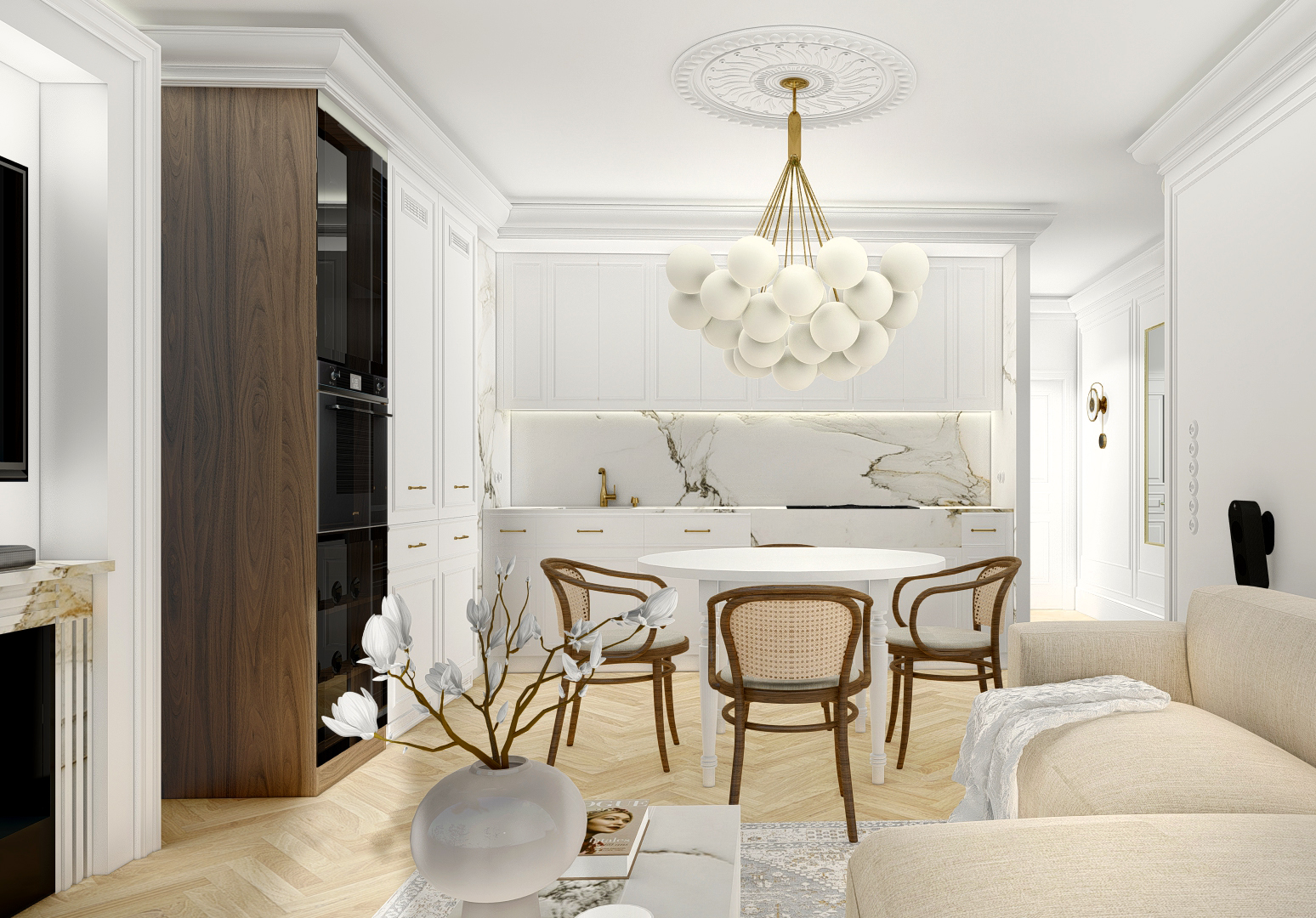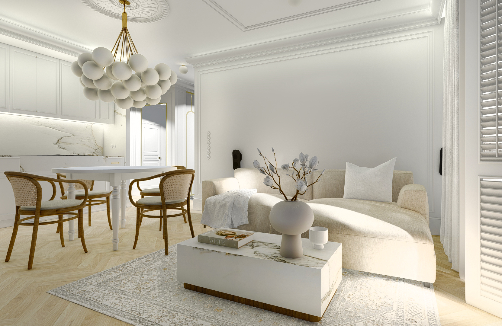 Lekkość i swobodna elegancja subtelnie podkreślona połyskiem wyznaczają charakter projektu Miss in Paris. Misternie zdobione rozety, gzymsy i sztukaterie wprowadzają ponadczasową klasykę, a złote akcenty nadają wnętrzu nowoczesny, świeży wyraz. Jak harmonijnie połączyć tradycję ze współczesnością i osobistym stylem? Właśnie w ten sposób!