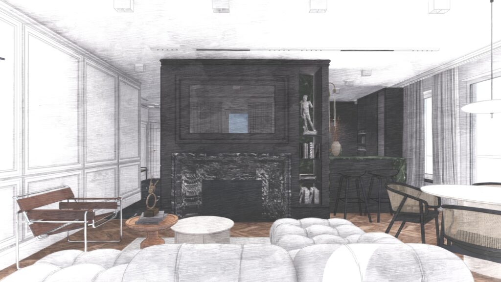 Pierwszy etap każdego projektowania – przygotowujemy układ funkcjonalny wnętrza i koncepcję przestrzenną. Poznajemy potencjał wnętrza, wyznaczamy jego charakter i stylistykę.