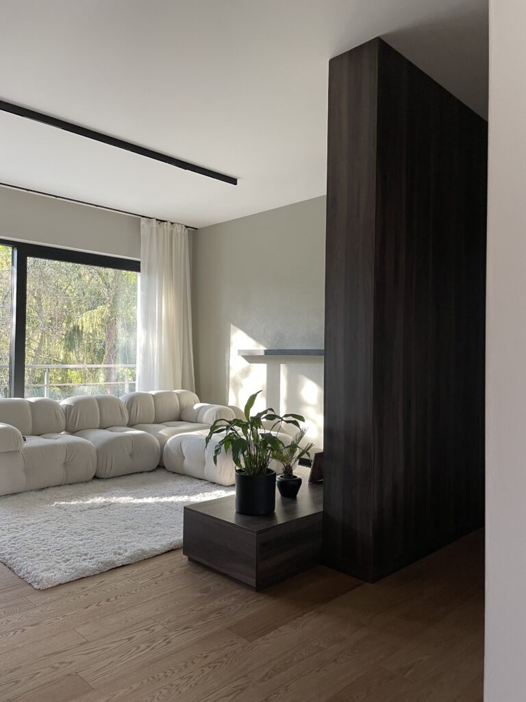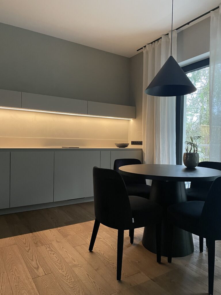 Projekt stanowi harmonijne połączenie minimalizmu z estetyką japandi. Przestrzeń zaprojektowano w sposób spójny i konsekwentny, opierając kompozycję na wyrazistych kontrastach kolorystycznych.